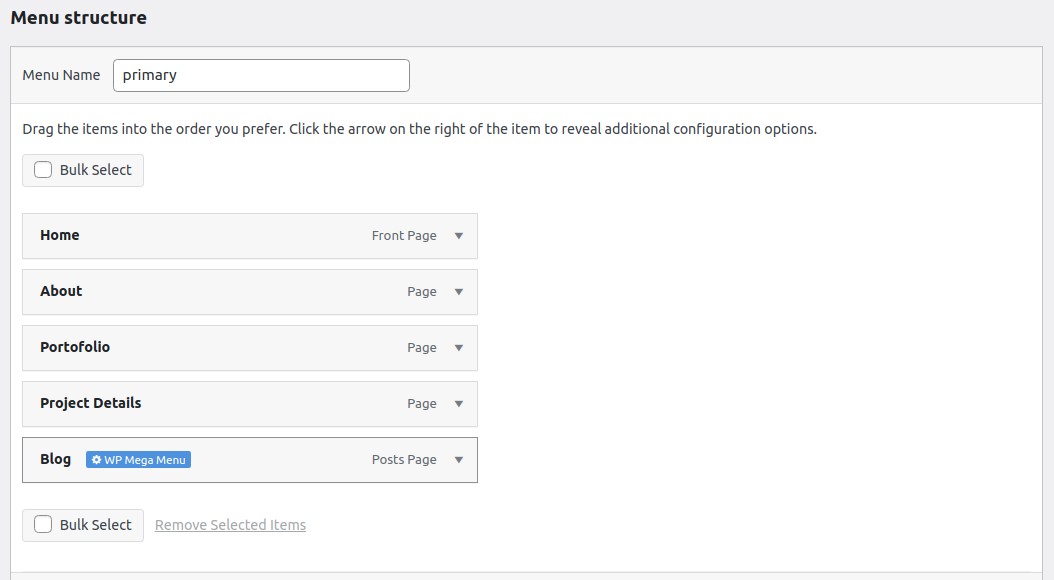 - Now, you can customize the menu using the plugin. To do that, navigate to Menu structure and select a page to edit – for example, the Blog page.