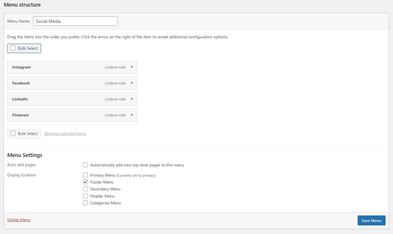 Now that you have created your website’s primary menu, adding secondary menus to showcase your social media profiles or other important information is worth considering.