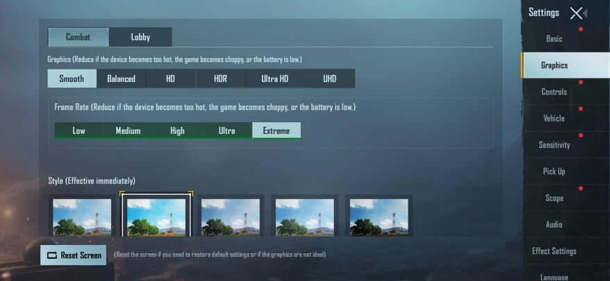 Another factor that has a minor impact of lagging issues in the PUBG Mobile on low devices. Most phones have smooth extreme options, if you have this graphic option then you definitely select this.