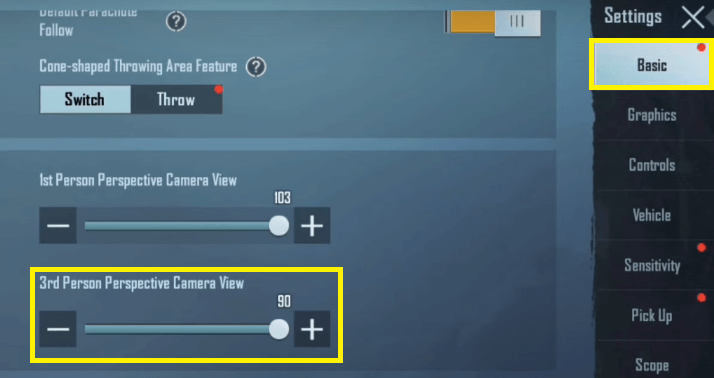 - find “3rd person perspective camera view” and fix it “80 to 90“