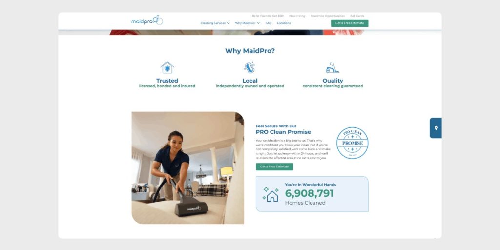 MaidPro ranks high because recurring scheduling seems like its natural lane. If the home mainly needs weekly or biweekly support, there is something reassuring about a company built around routine.