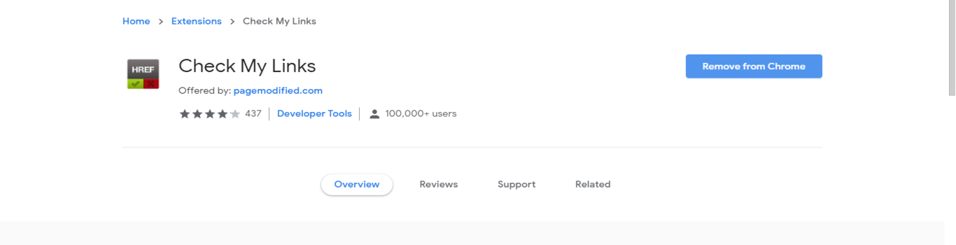 You can find valid and invalid links to your website. 100,000 plus users are using this extension for checking links.