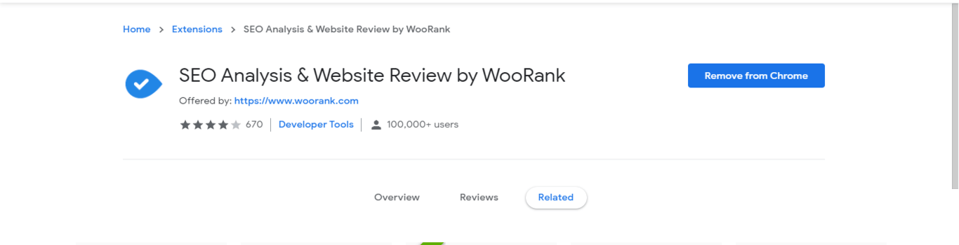 Woorank extension, Woorank is a site analytics tool similar to PageSpeed Insights that lets users see suggestions for improvement on their web pages.