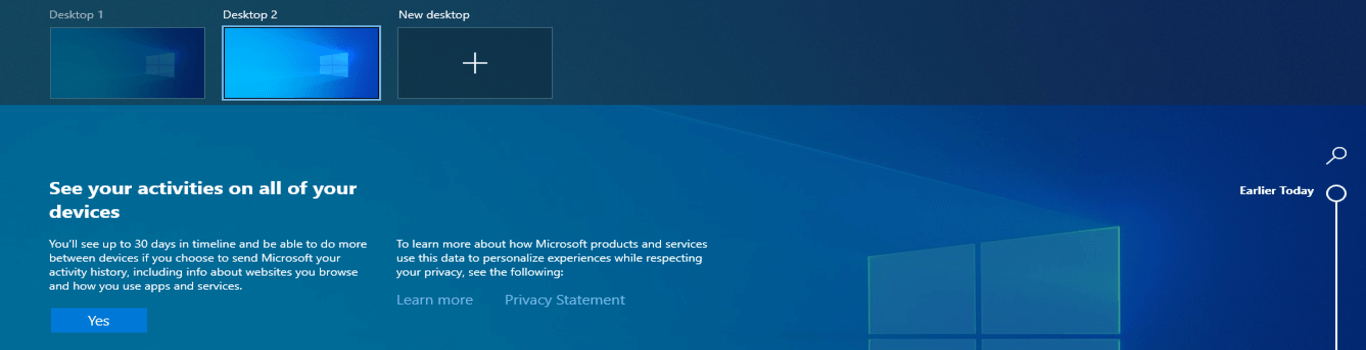 Pressing on New desktop can create a new empty space in which to open other windows. The taskbar changes to show the apps you have opened on that desktop, even if the shortcuts for blocked apps (on the taskbar) remain unchanged on all desktops.